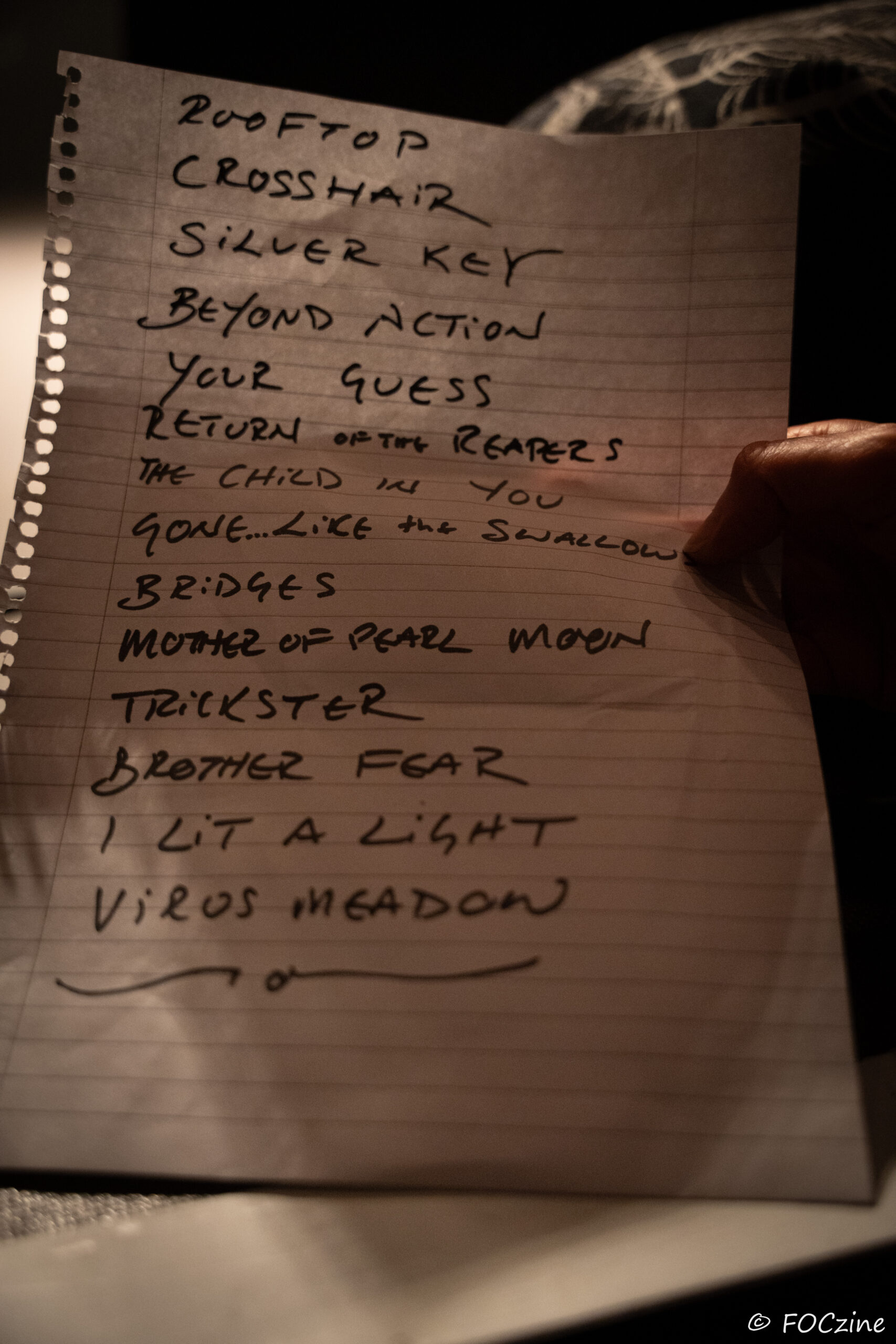 Et puis, comme un point de bascule, le concert s’ancre dans une mémoire plus ancienne. La dernière partie fait la part belle aux incontournables de Virus Meadow. Là, l’émotion change de nature : plus directe, plus viscérale. Slow Pulse Boy, Gone Like the Swallows, Virus Meadow, Scarlet Arch, Shantell viennent rappeler la force intacte de ces compositions, leur capacité à traverser les décennies sans perdre de leur puissance.