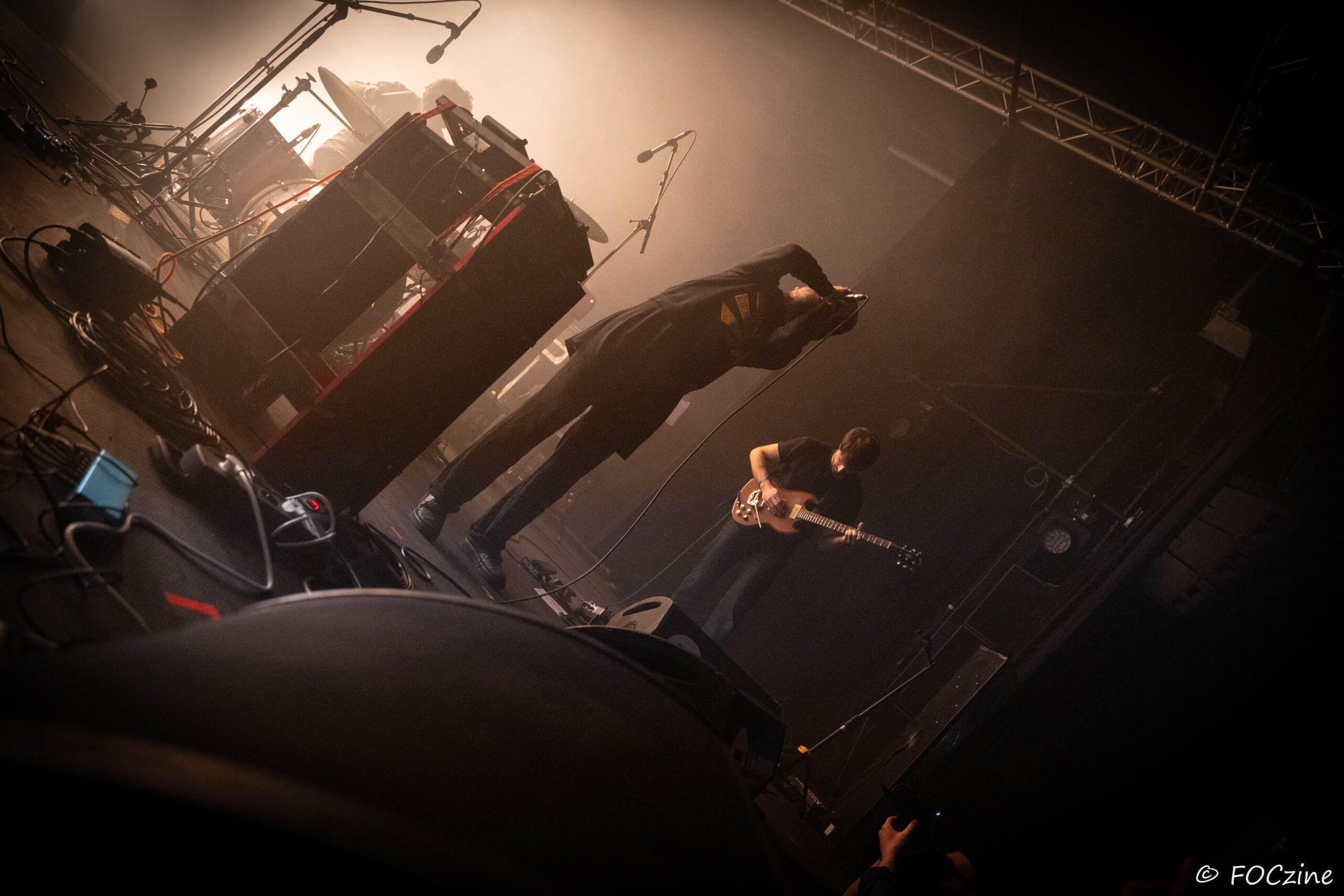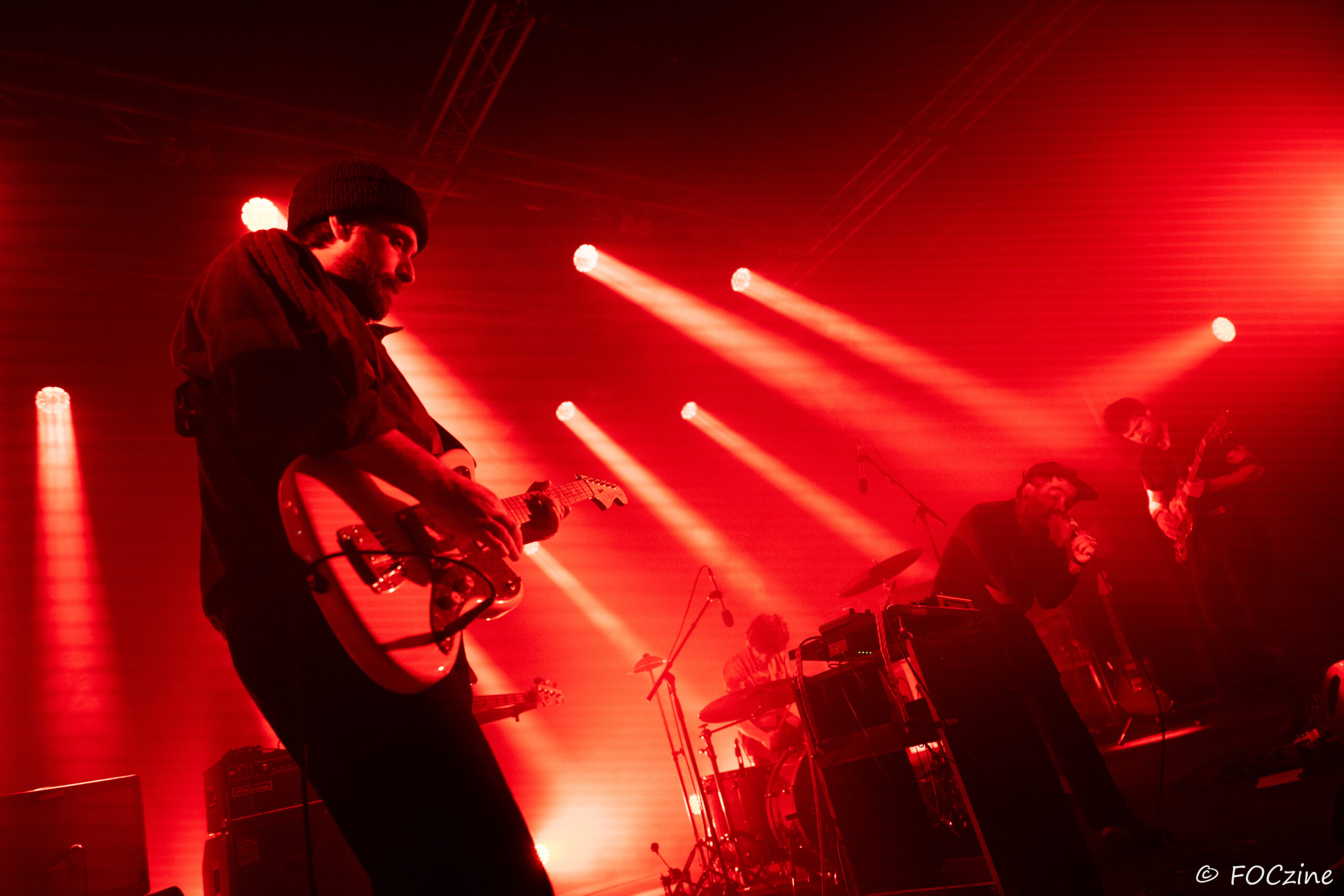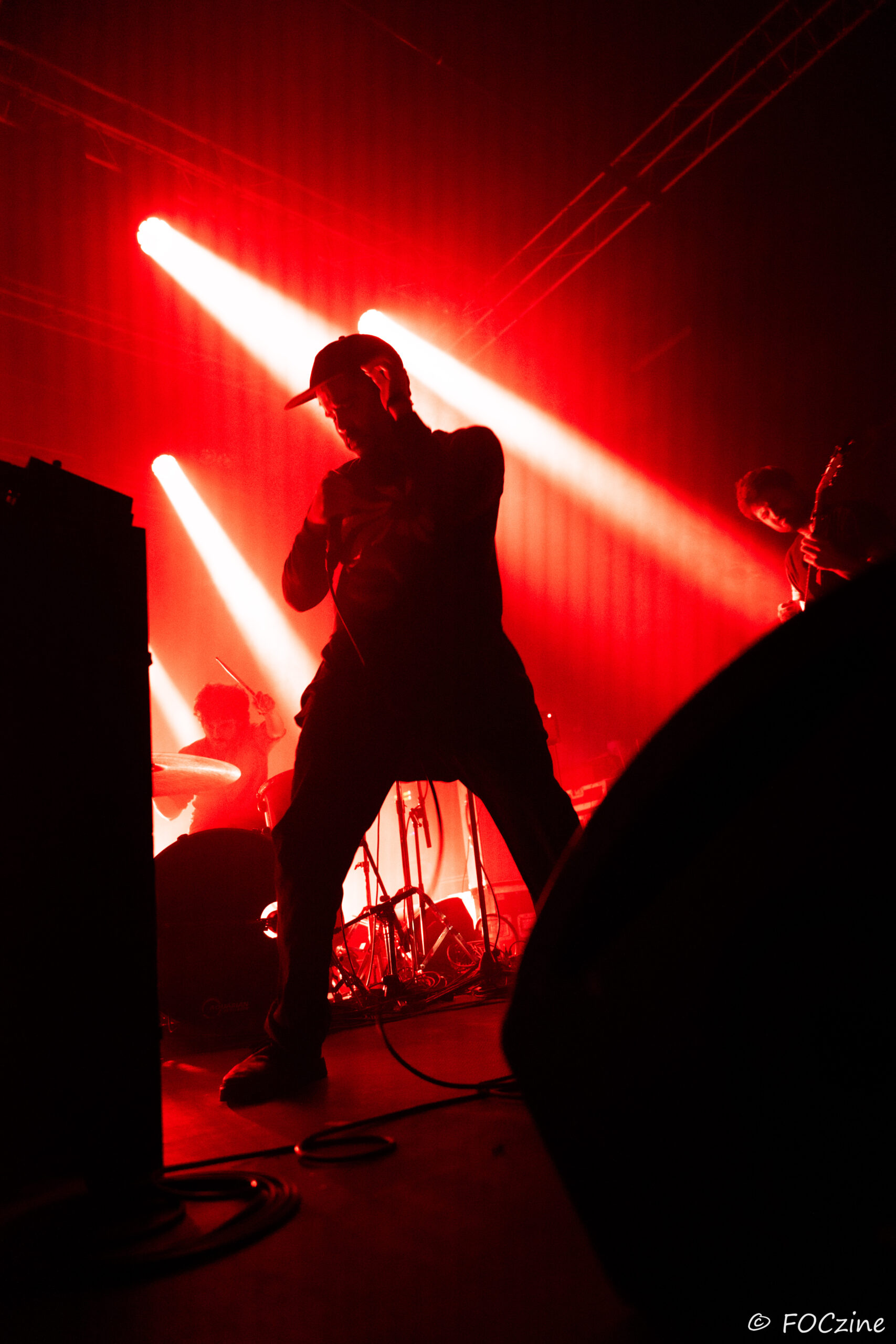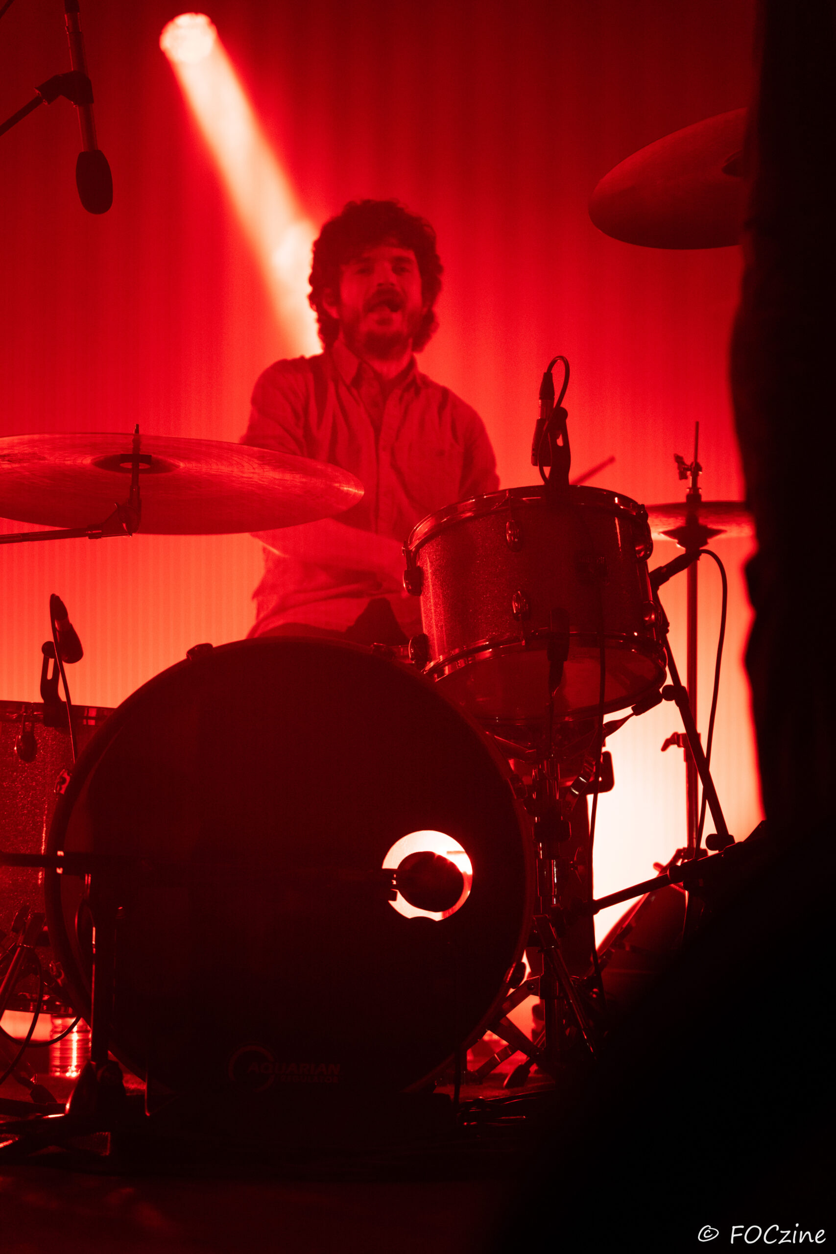 Il aura fallu attendre la 1ere cloche de 20H30 pour que le groupe Dééfait (FR), né entre Mexico City et la scène underground parisienne, nous façonne un son dense, répétitif et viscéral, entre krautrock, noise rock et psychédélisme. Formé en 2023, le groupe réunit les frères Valero, Enir Da, Grégoire Couvert et le performeur mexicain Riki Lara, dont les textes naviguent entre anglais, espagnol et français. une approche musicale pensée comme un rituel en transe sans refrains ni concessions mélodiques. Le 1er Upercut de la soirée et , je peux déjà l’écrire mon coup de coeur du vendredi.