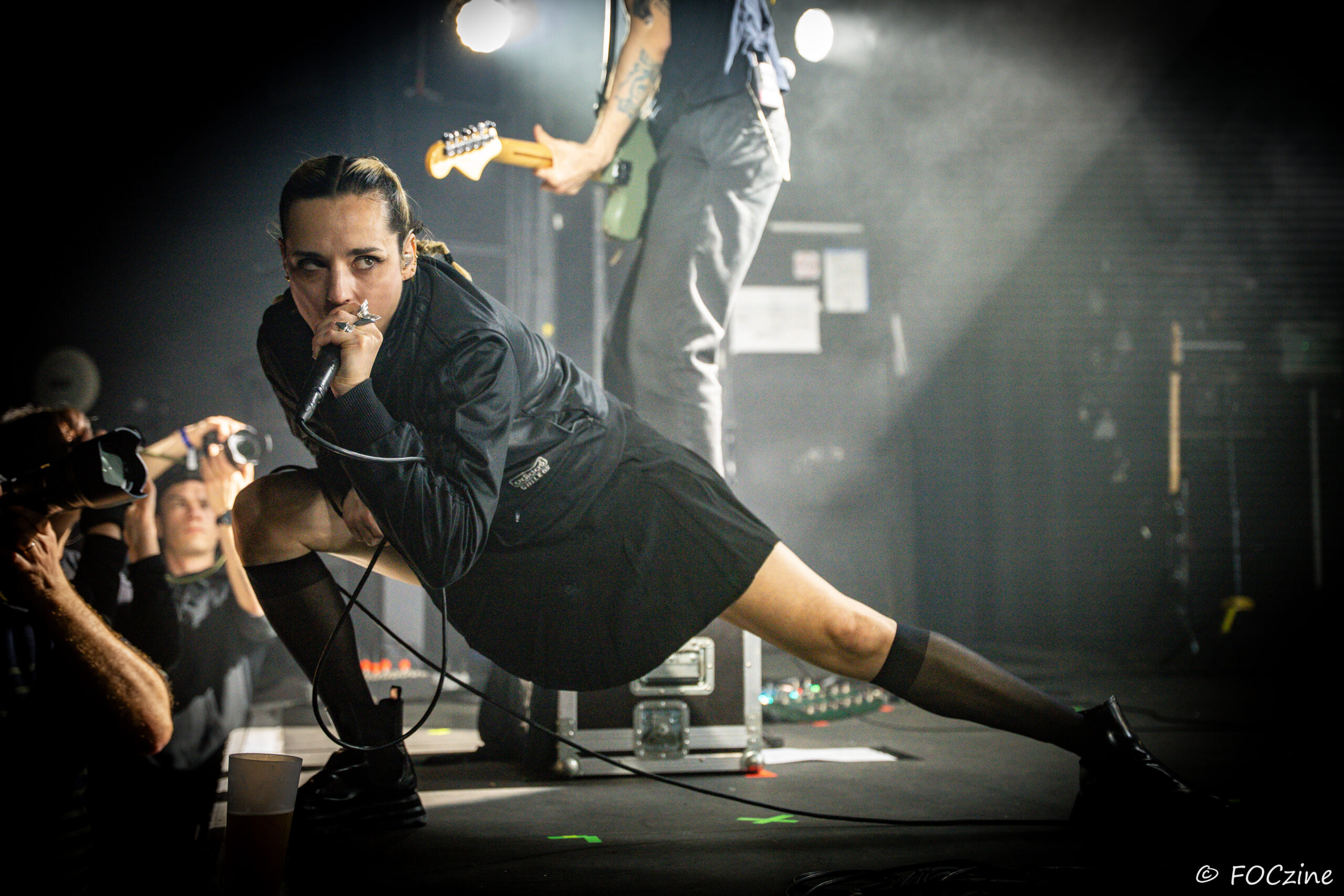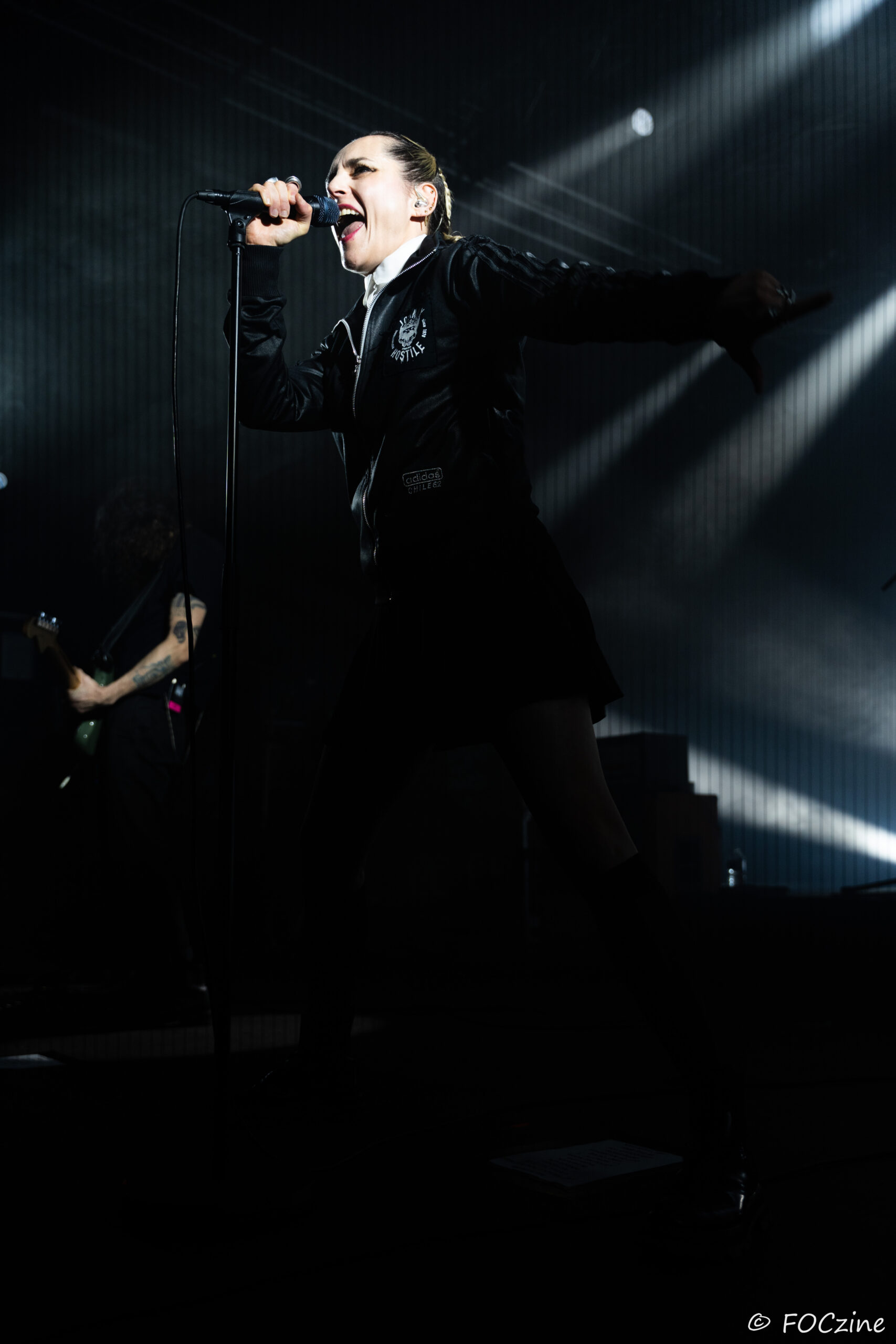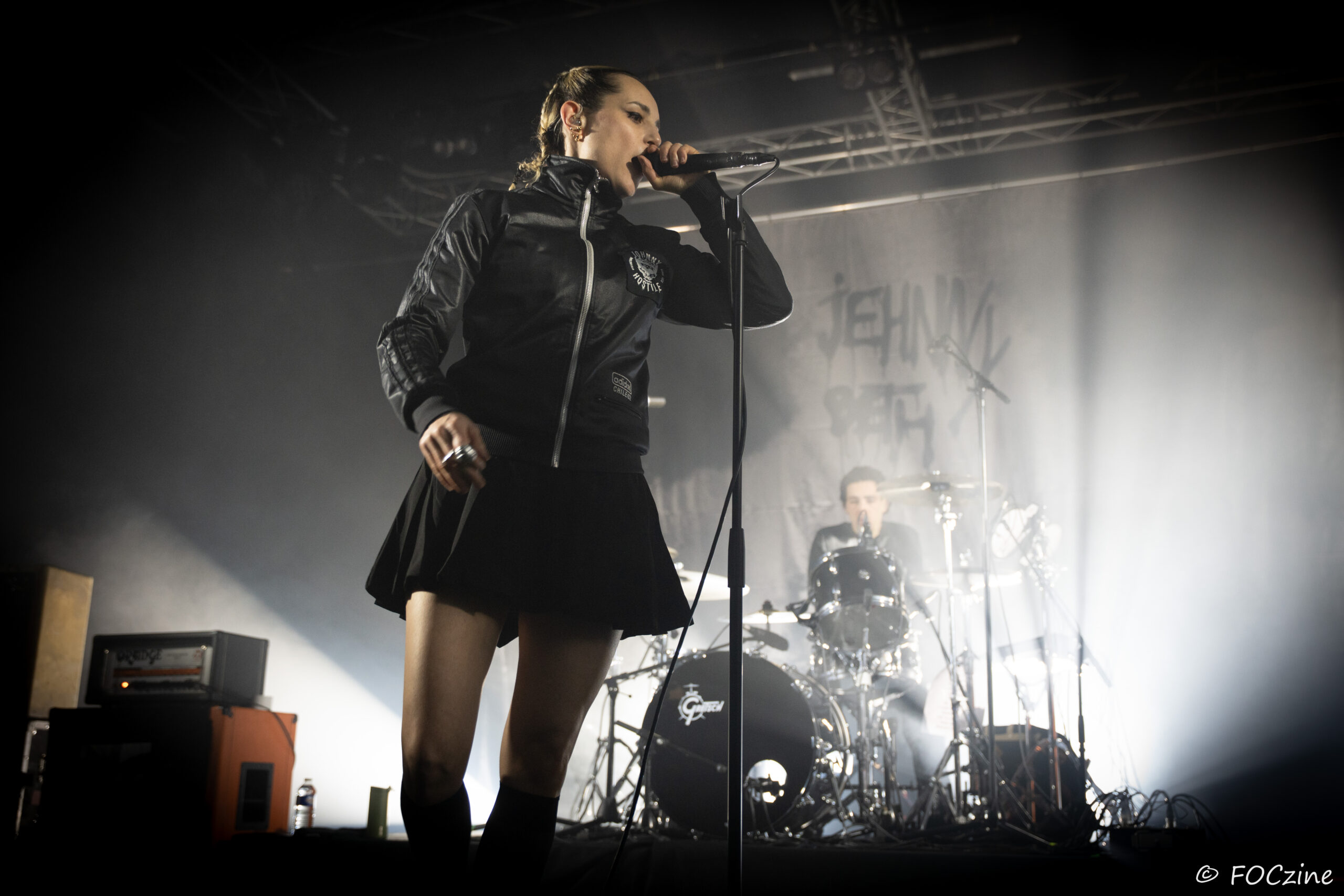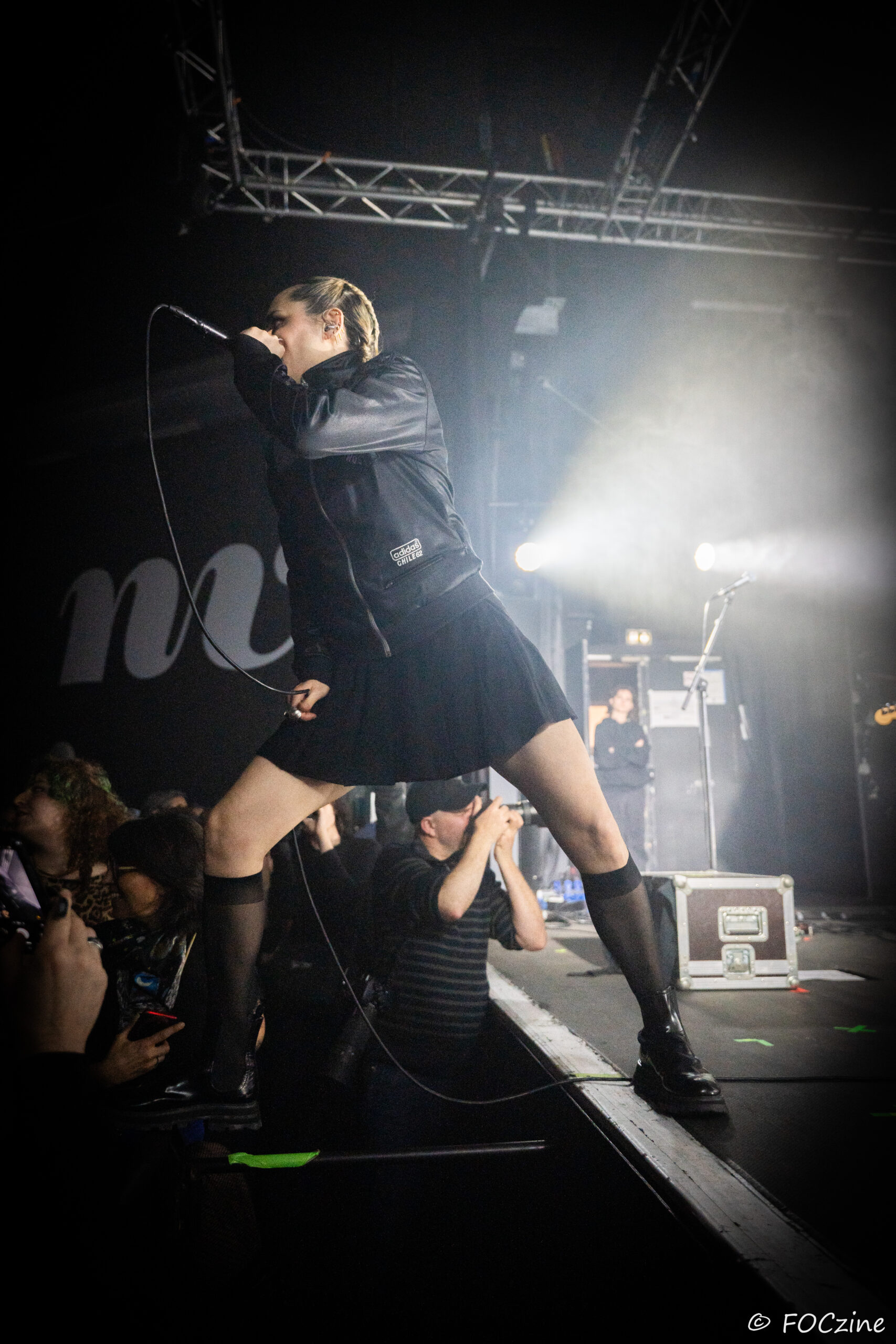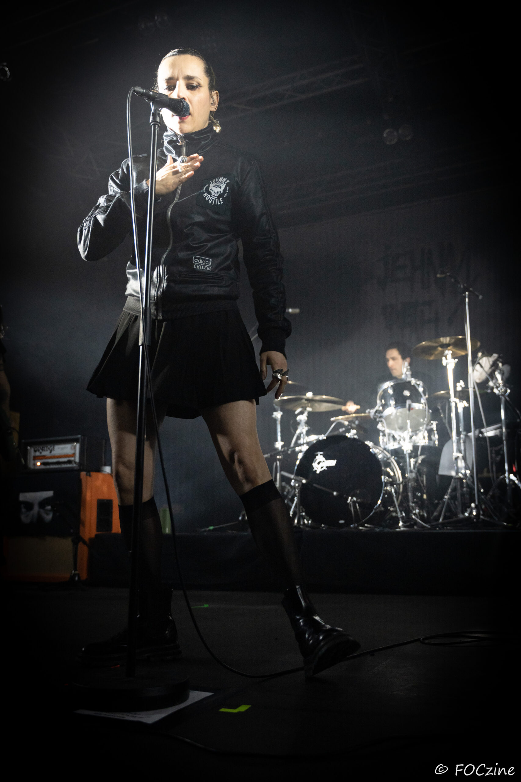 Elle qui à commencé sa carrière sur la scène française, avant de s’installer au Royaume-Uni et devenir la voix du groupe post-punk Savages, se présente à nous, excitée comme une puce, remuant ciel et terre pour faire vibrer un public, rapidement conquis. Elle joue de ses atouts de performeuse glamour, socquette montante, jupe plissée et blouson noir Adidas chile 62. Son accent franglais se mêle à son style, renforçant la tension et l’intensité de sa voix. Ses tresses blondes coiffées en arrière lui donnent de faux airs d’héroïne manga. Ajoutez-y trois musiciens nerveux (John-Fredrik Sjöberg alias Johnny Hostile son fidèle guitariste, Wendy Kilmen à la batterie et Hugues, au cheveux rouge, à la basse) et les aficionados qui étaient venu chercher du gros son en ont pour leur argent. La corrida est musclée, au plus près de la fosse, souvent dedans, dessus, et parfois dessous quand le public échoue au porté. Au final je ne me suis même pas fait trancher les deux oreilles. Un live explosif et collectif qui prévaut sur l’écoute dans son salon de l’album You Heartbreaker, You. Son approche vocale, toute en force, cache une vulnérabilité qu’on devinera dans les remerciements qu’elle adresse au public, à la Bretagne et à la Route du Rock en fin de set. Les caméras étaient éteintes ce soir et Jehnny ne semblait pas surjouer. Vous en doutiez ?