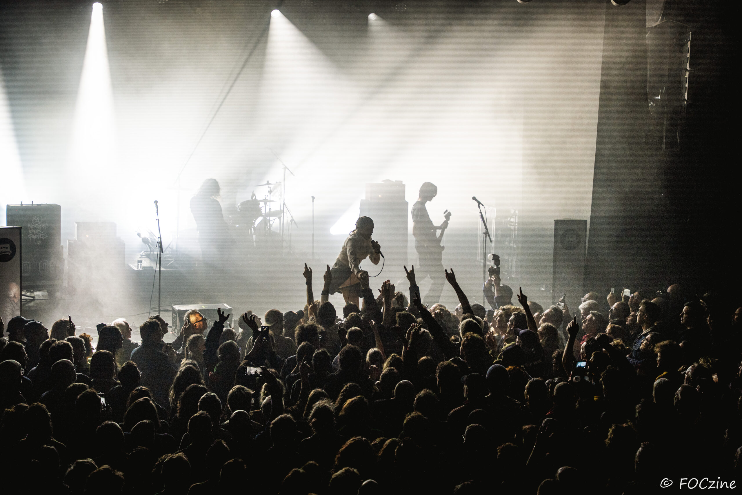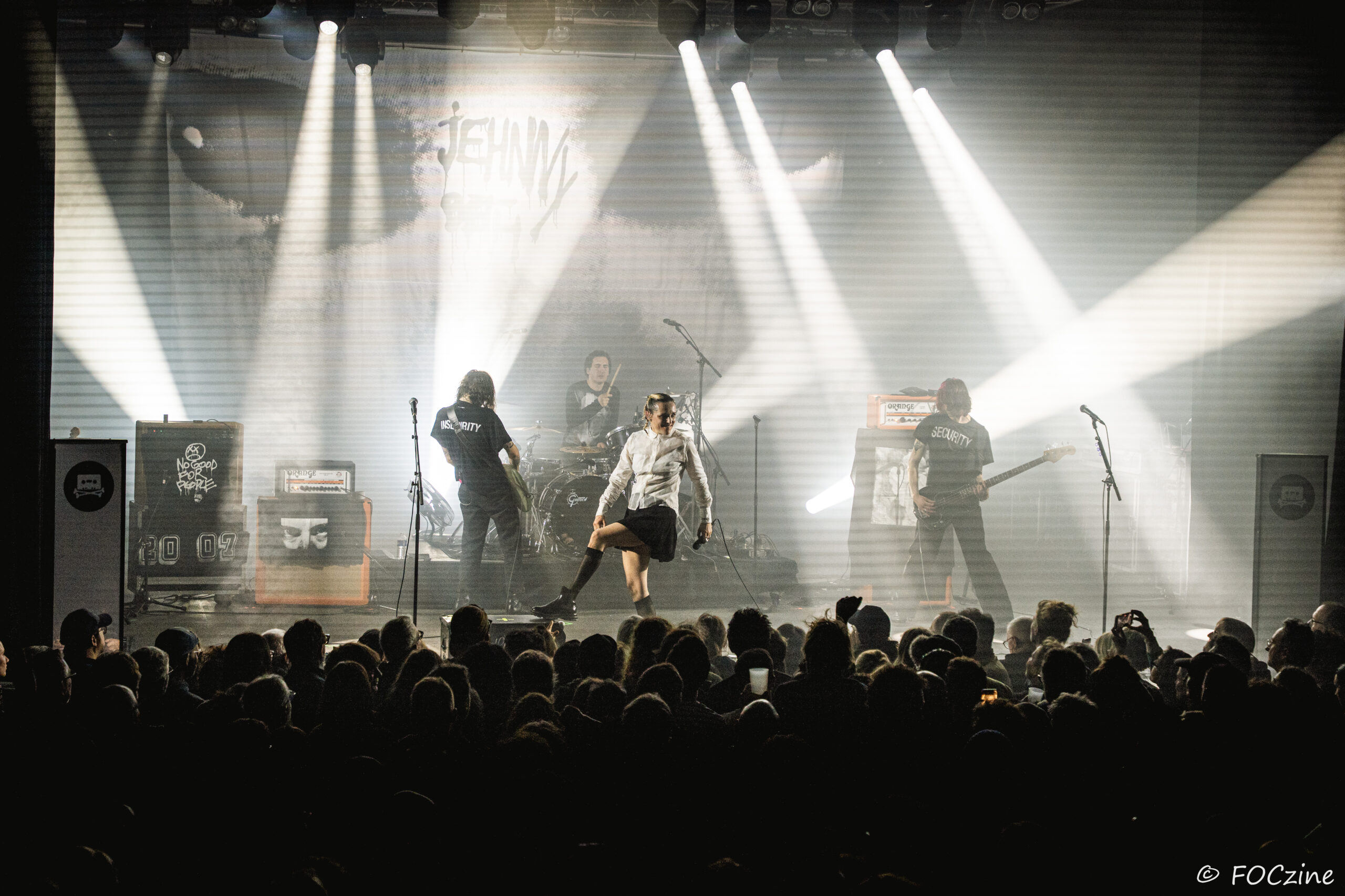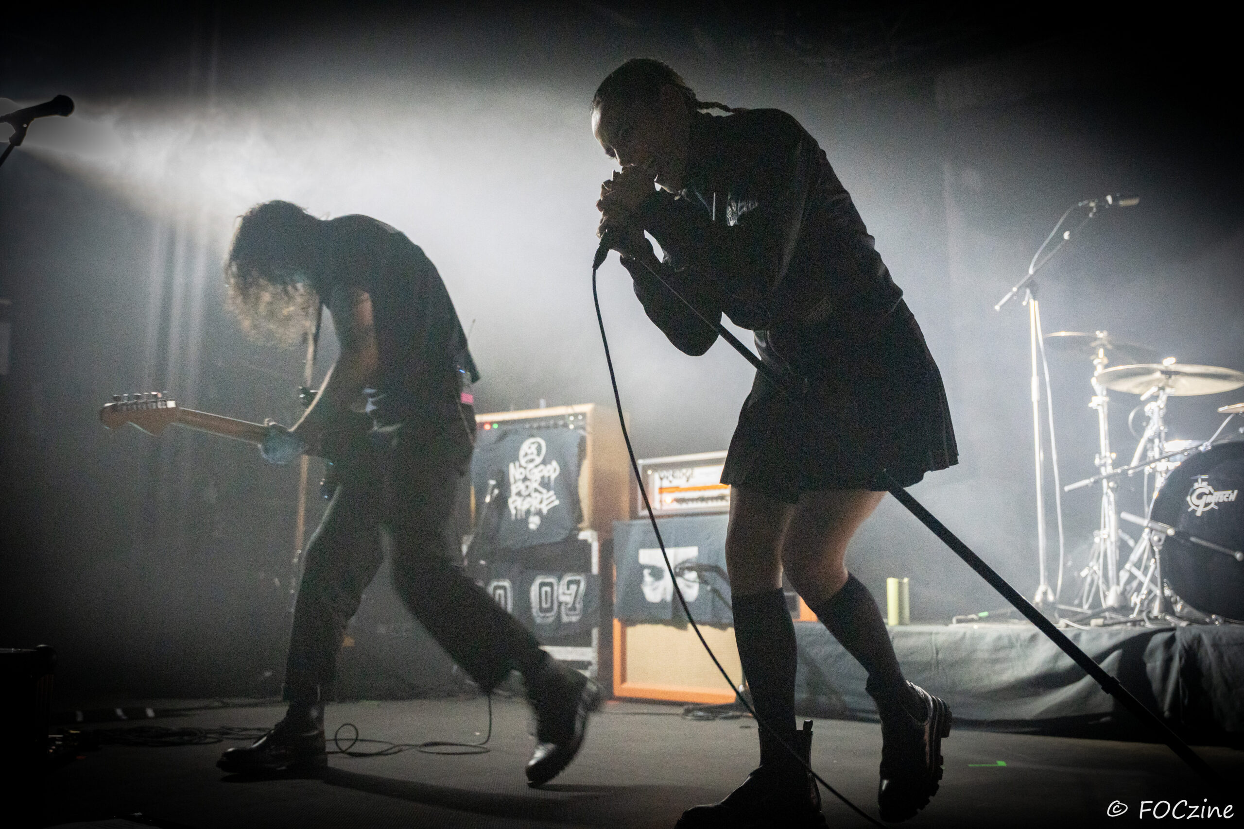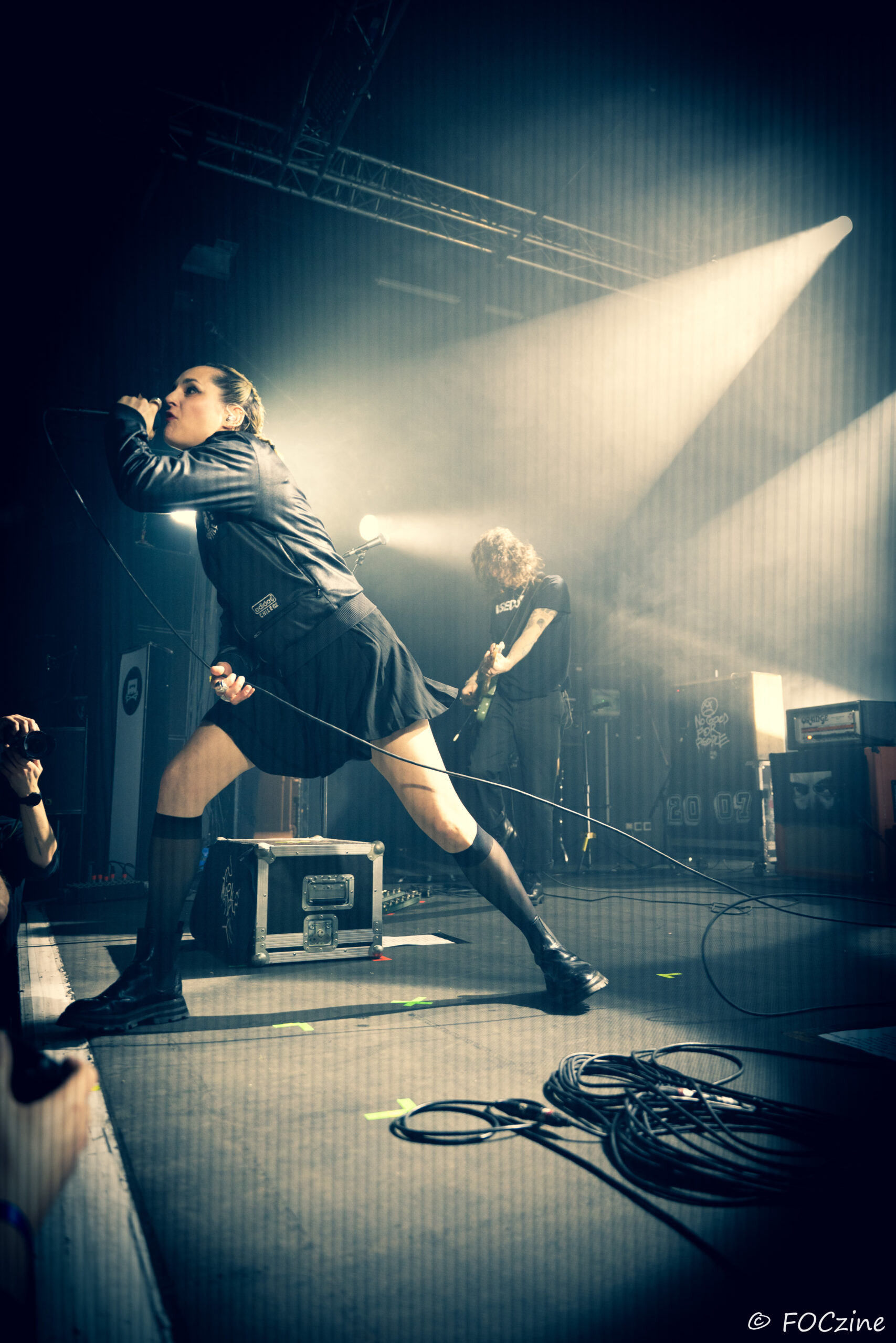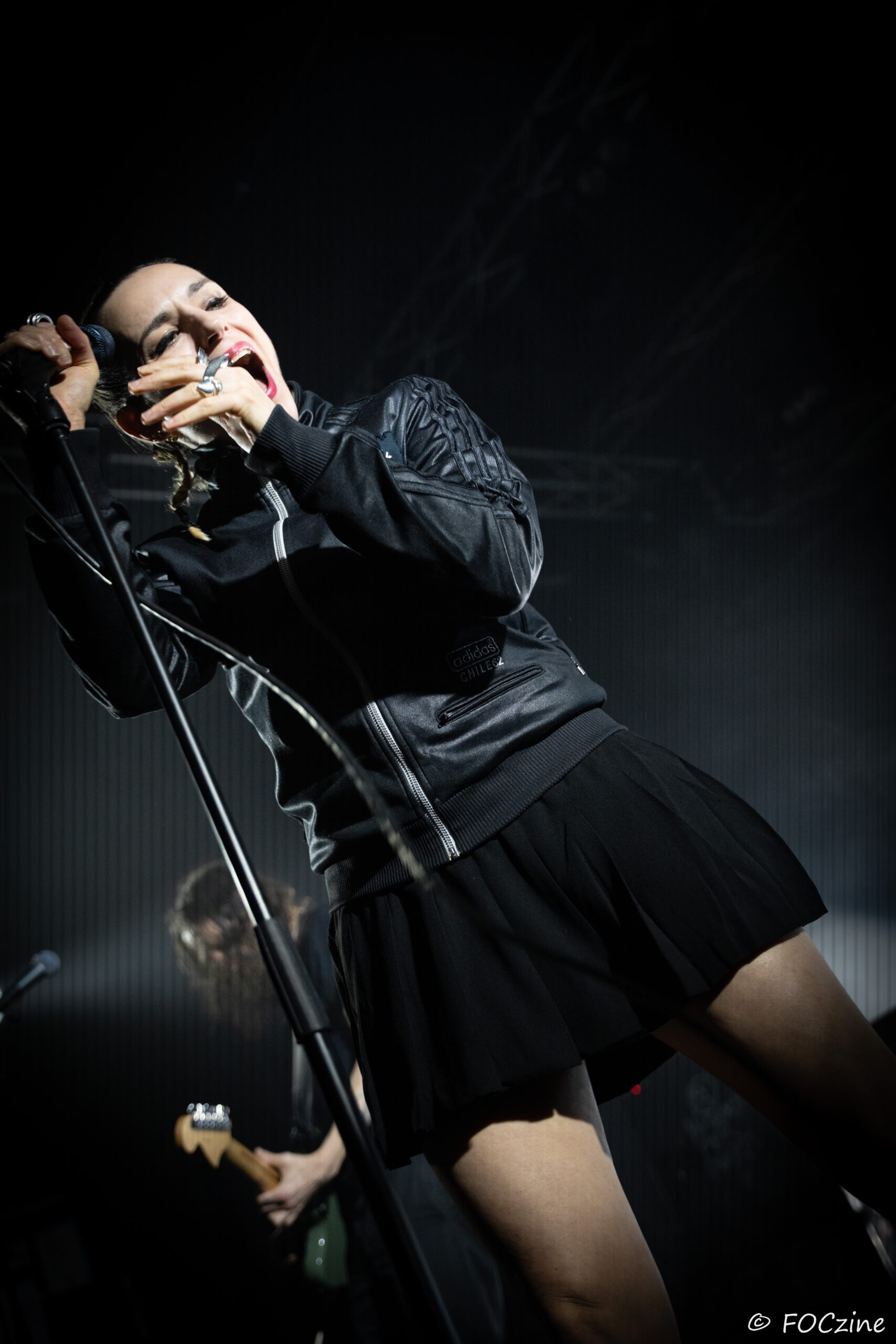 Elle qui à commencé sa carrière sur la scène française, avant de s’installer au Royaume-Uni et devenir la voix du groupe post-punk Savages, se présente à nous, excitée comme une puce, remuant ciel et terre pour faire vibrer un public, rapidement conquis. Elle joue de ses atouts de performeuse glamour, socquette montante, jupe plissée et blouson noir Adidas chile 62. Son accent franglais se mêle à son style, renforçant la tension et l’intensité de sa voix. Ses tresses blondes coiffées en arrière lui donnent de faux airs d’héroïne manga. Ajoutez-y trois musiciens nerveux (John-Fredrik Sjöberg alias Johnny Hostile son fidèle guitariste, Wendy Kilmen à la batterie et Hugues, au cheveux rouge, à la basse) et les aficionados qui étaient venu chercher du gros son en ont pour leur argent. La corrida est musclée, au plus près de la fosse, souvent dedans, dessus, et parfois dessous quand le public échoue au porté. Au final je ne me suis même pas fait trancher les deux oreilles. Un live explosif et collectif qui prévaut sur l’écoute dans son salon de l’album You Heartbreaker, You. Son approche vocale, toute en force, cache une vulnérabilité qu’on devinera dans les remerciements qu’elle adresse au public, à la Bretagne et à la Route du Rock en fin de set. Les caméras étaient éteintes ce soir et Jehnny ne semblait pas surjouer. Vous en doutiez ?