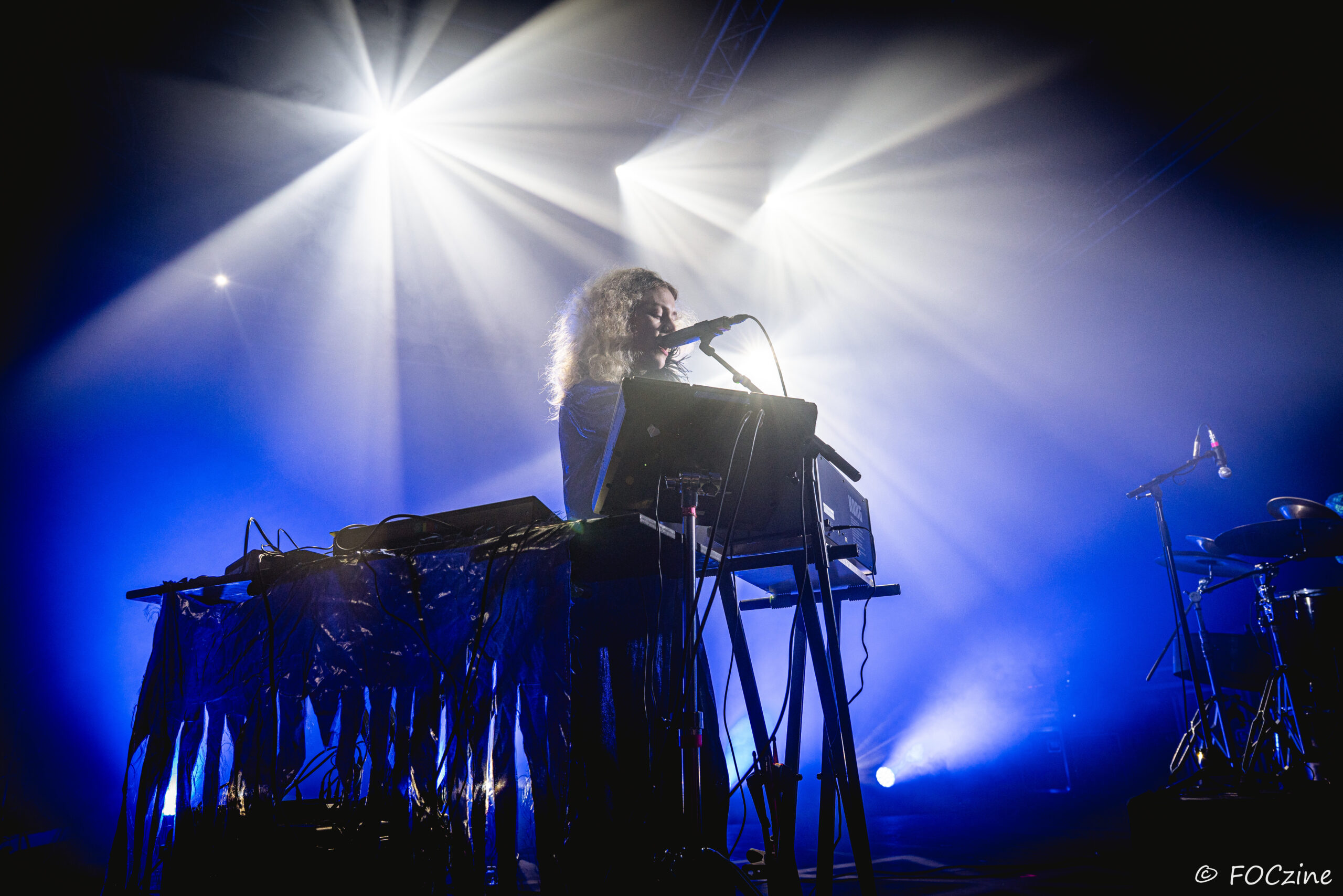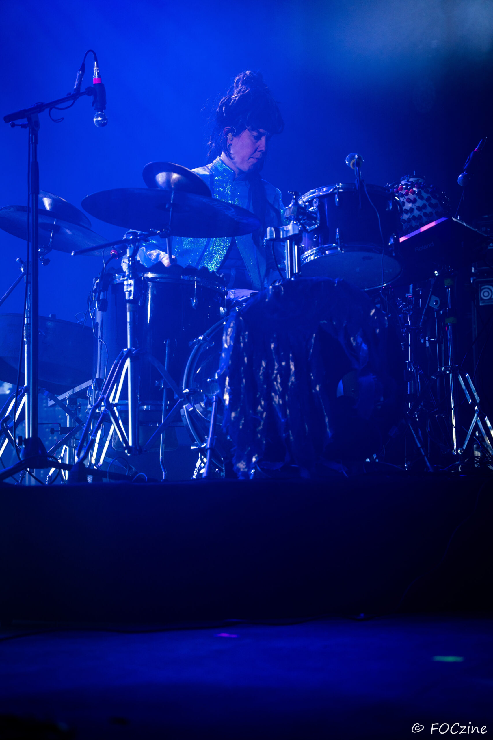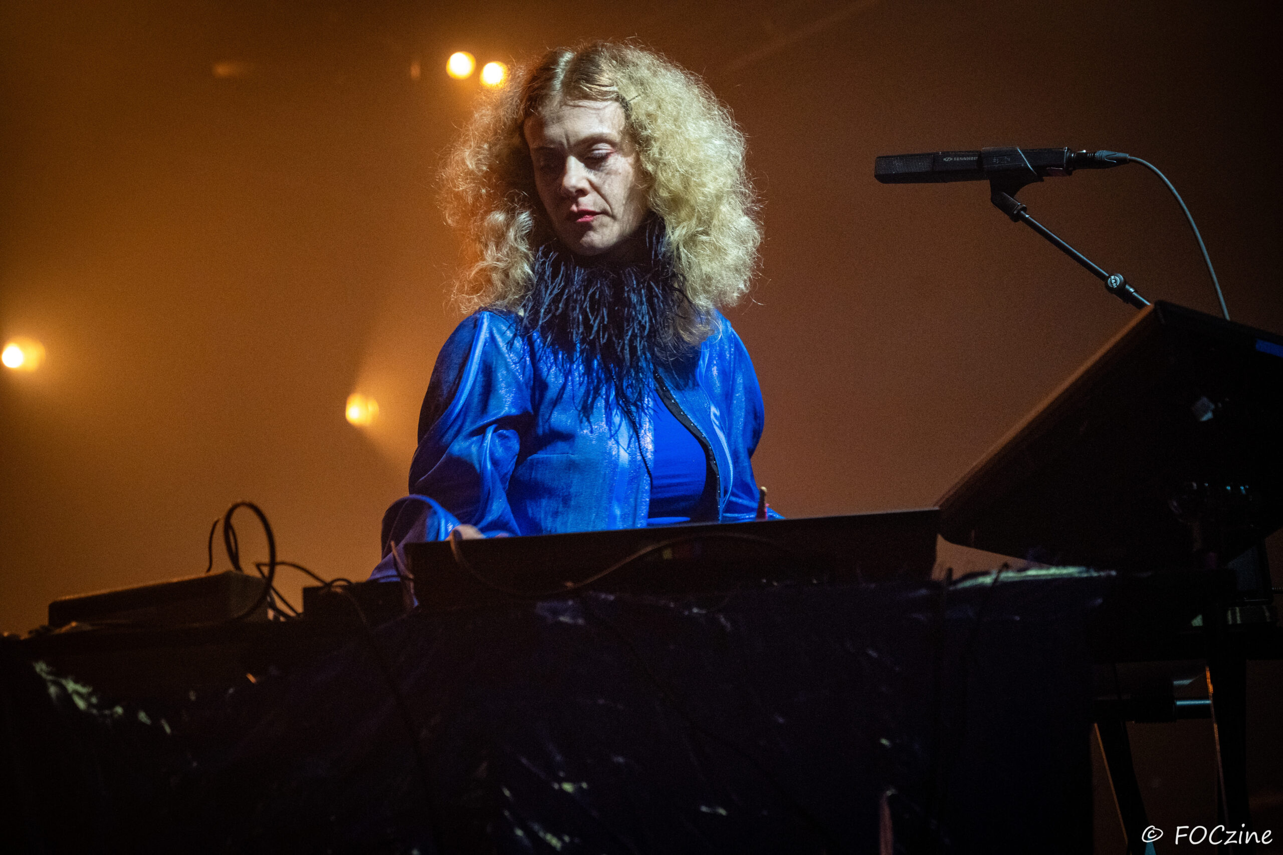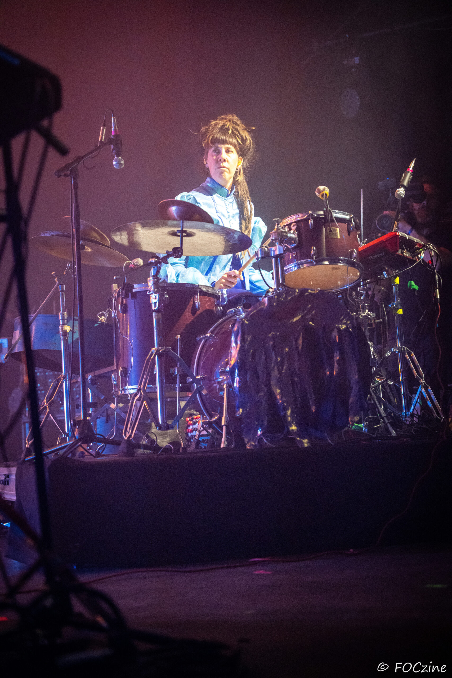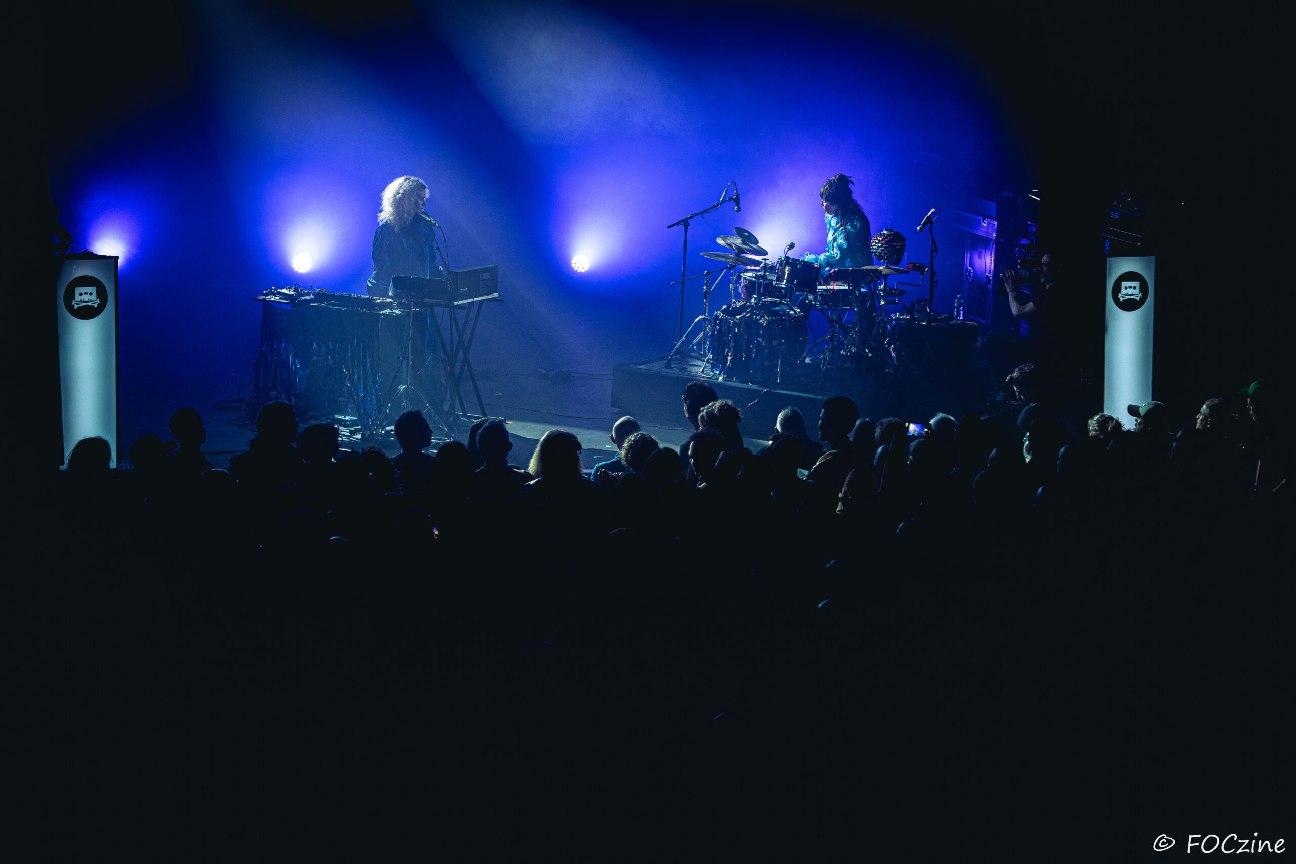 Rosa Ronsdorf et Nina Jong forment le duo néerlandais Spill Gold. Rosa chante et joue des synthétiseurs, tandis que Nina crée des rythmes percussifs hypnotiques. Explorant un univers musical mêlant krautrock, psychédélisme, synth pop expérimentale et musique électronique, elles composent des morceaux immersifs mêlant sons et rythmiques singuliers particulièrement mélodiques et dansants. Une fois qu’on a dit cela, on ne peut que vous encourager à écouter l’album Zaza (2024) où les deux musiciennes affirment une identité artistique unique. Manquerait plus qu’elles soient généreuses ! Féériques, vous voulez dire ! Rosa dans sa robe bleue, boa au cou, n’a rien d’une Cruella. Ses cheveux sont ébouriffés, car comme nous, ils sont électrisés et ne restent pas statiques. Le décorum bleu est envoûtant et lie les deux artistes, Nina arborant une salopette de la même couleur, en tissus de lumières. On se croit dans un conte pour enfants, nos yeux sont grands ouverts et nos oreilles toutes ouïes. C’est beau, ca dure, on est bien. Les Spill Gold renversent de l’or, elles sont nos muses du samedi qu’on voudrait encore entendre le dimanche, nos sirènes du port d’Amsterdam. J’ai un secret à vous dire, Rosa et Nina adorent la Bretagne : « c’est l’un de nos endroits préférés sur cette planète, on a rencontré des créatures magiques le long de la côte et on a aussi dégusté de véritables crêpes bretonnes ».