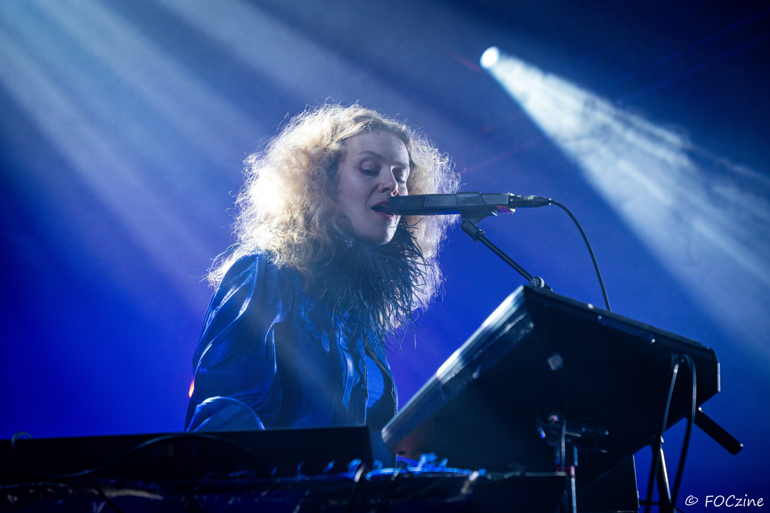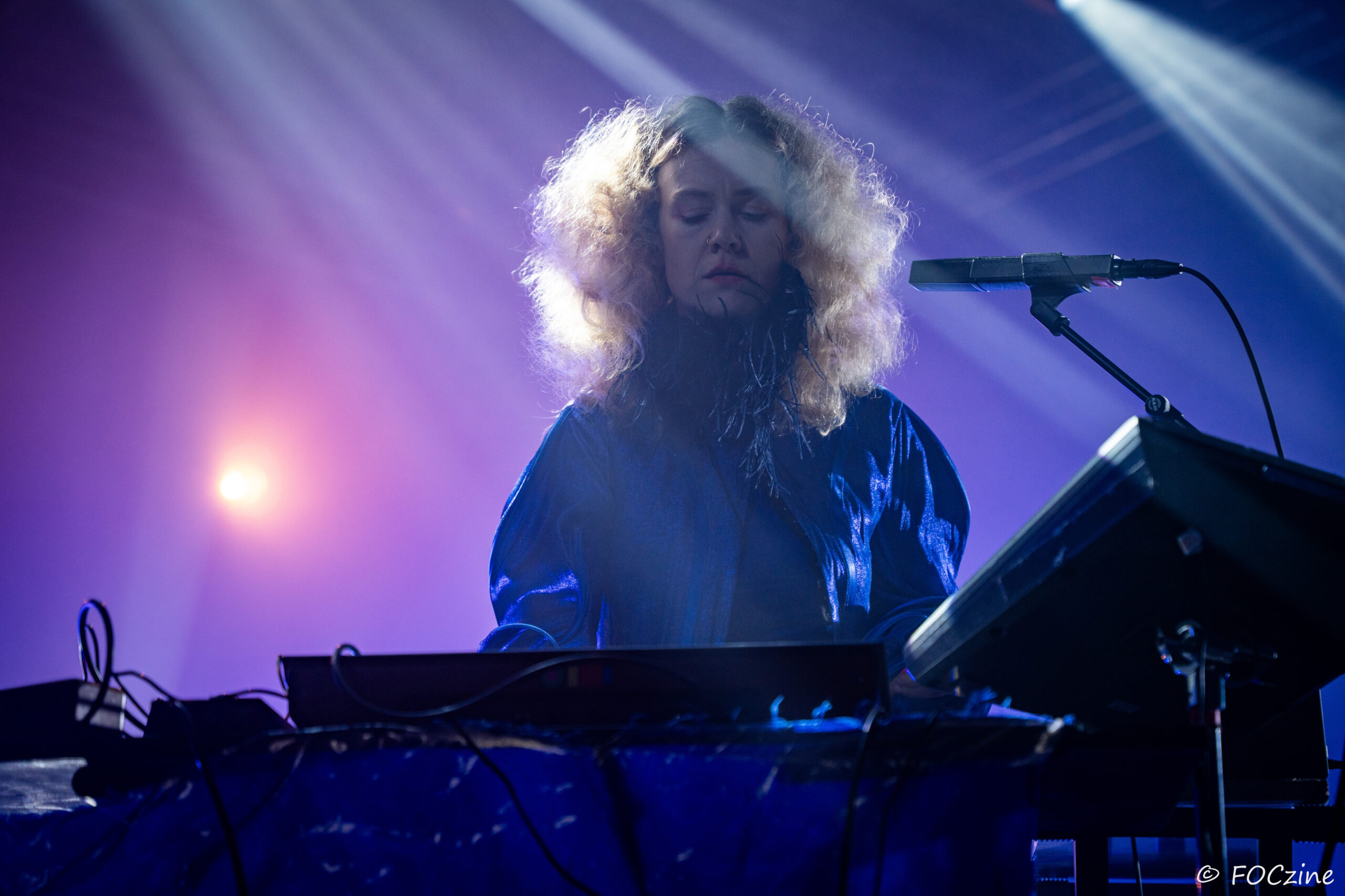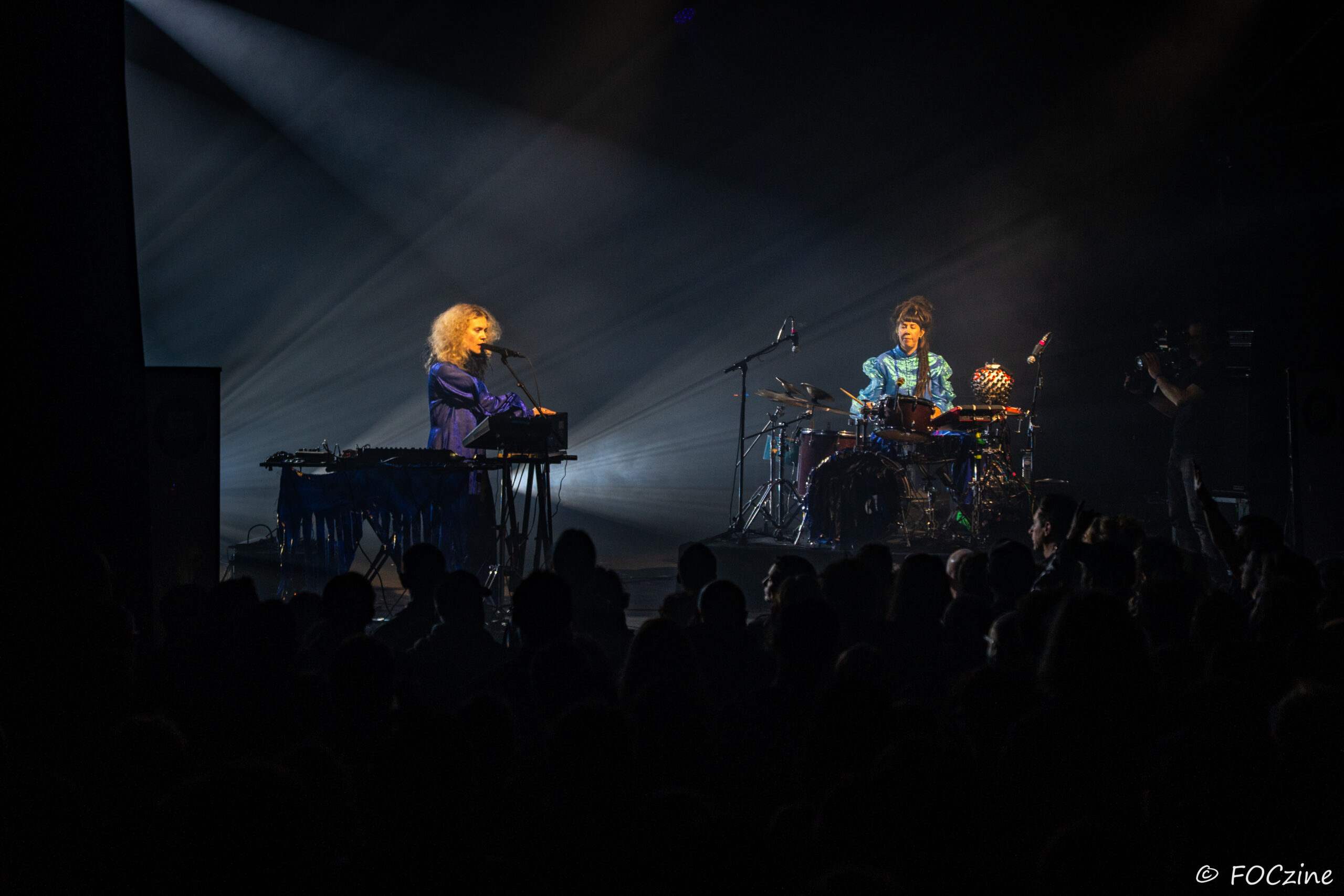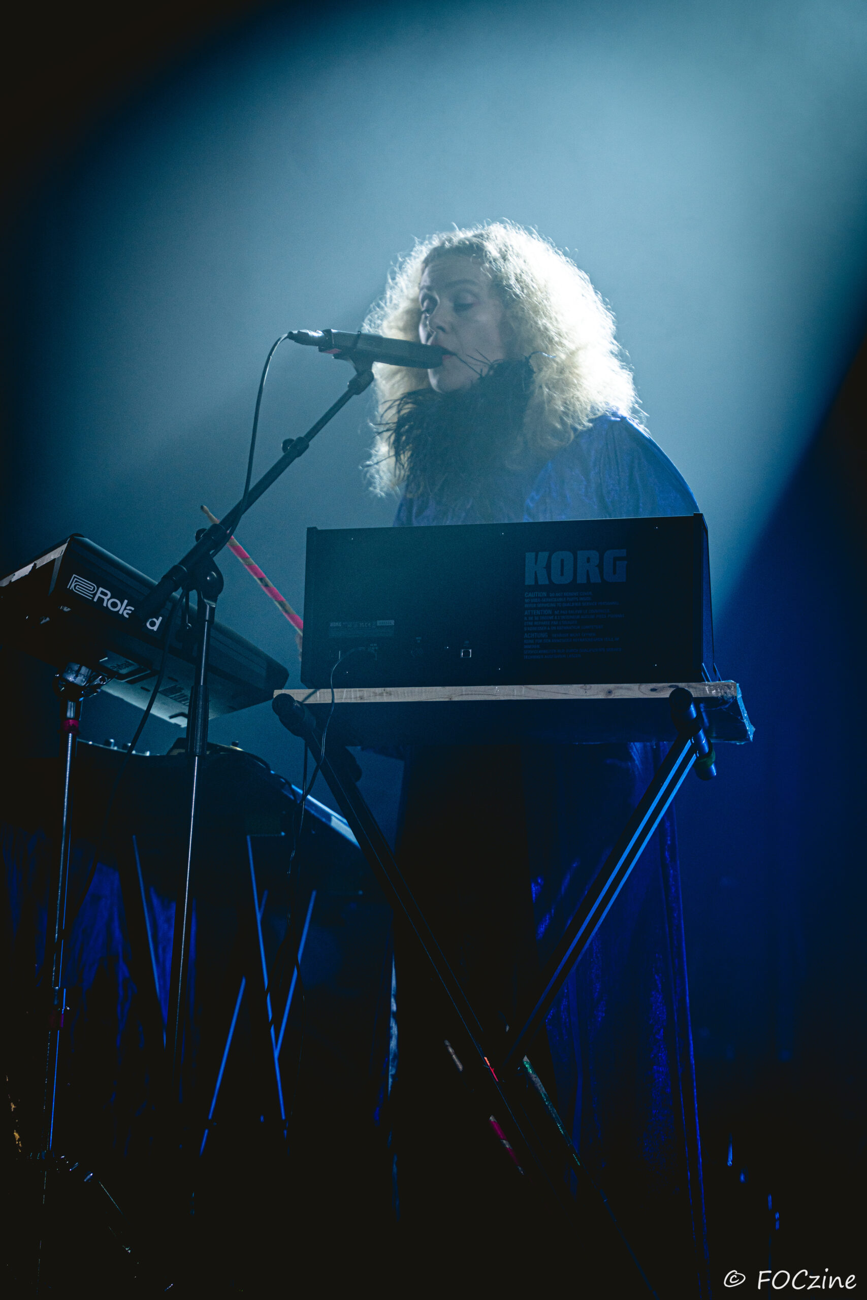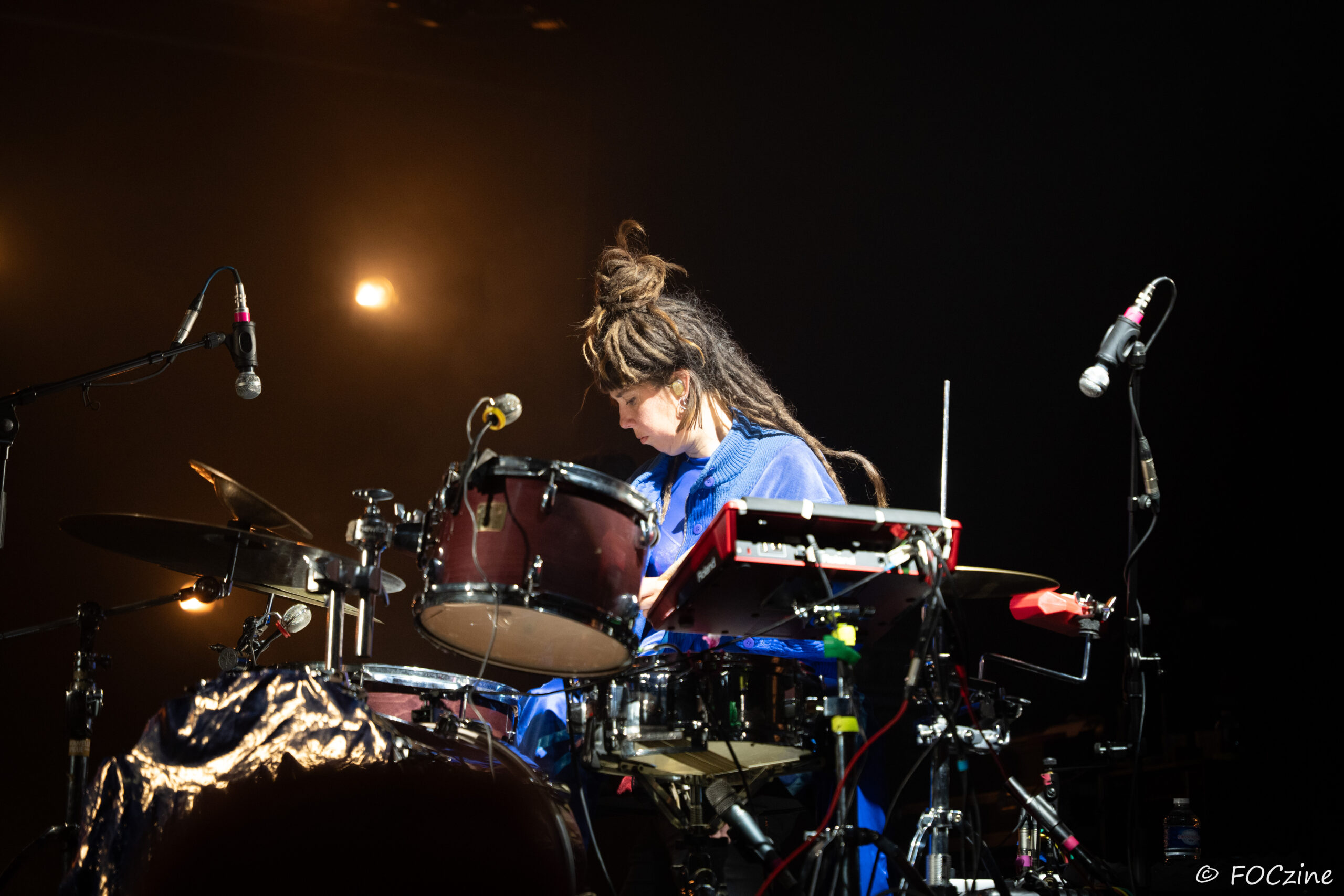 Rosa Ronsdorf et Nina Jong forment le duo néerlandais Spill Gold. Rosa chante et joue des synthétiseurs, tandis que Nina crée des rythmes percussifs hypnotiques. Explorant un univers musical mêlant krautrock, psychédélisme, synth pop expérimentale et musique électronique, elles composent des morceaux immersifs mêlant sons et rythmiques singuliers particulièrement mélodiques et dansants. Une fois qu’on a dit cela, on ne peut que vous encourager à écouter l’album Zaza (2024) où les deux musiciennes affirment une identité artistique unique. Manquerait plus qu’elles soient généreuses ! Féériques, vous voulez dire ! Rosa dans sa robe bleue, boa au cou, n’a rien d’une Cruella. Ses cheveux sont ébouriffés, car comme nous, ils sont électrisés et ne restent pas statiques. Le décorum bleu est envoûtant et lie les deux artistes, Nina arborant une salopette de la même couleur, en tissus de lumières. On se croit dans un conte pour enfants, nos yeux sont grands ouverts et nos oreilles toutes ouïes. C’est beau, ca dure, on est bien. Les Spill Gold renversent de l’or, elles sont nos muses du samedi qu’on voudrait encore entendre le dimanche, nos sirènes du port d’Amsterdam. J’ai un secret à vous dire, Rosa et Nina adorent la Bretagne : « c’est l’un de nos endroits préférés sur cette planète, on a rencontré des créatures magiques le long de la côte et on a aussi dégusté de véritables crêpes bretonnes ».
