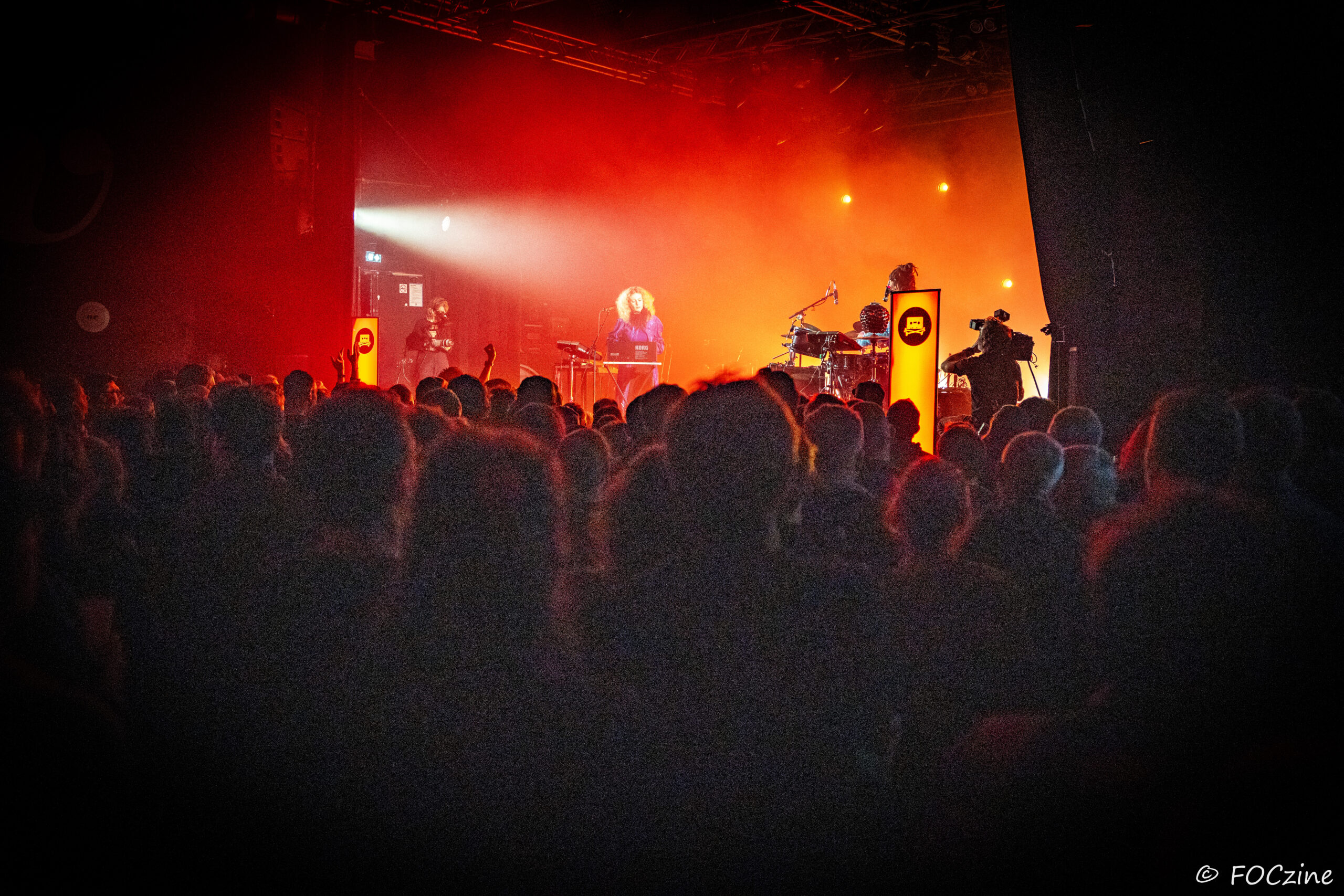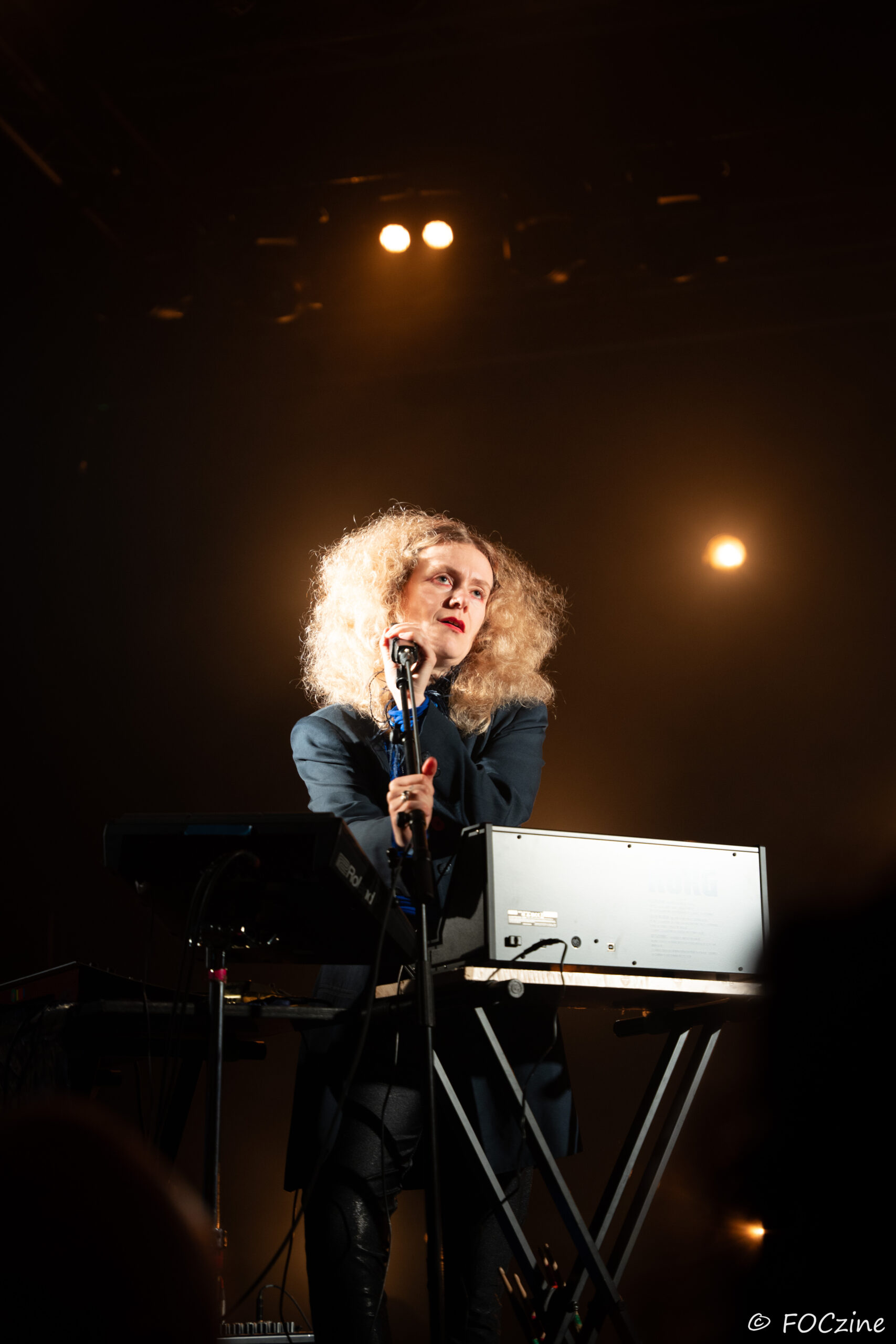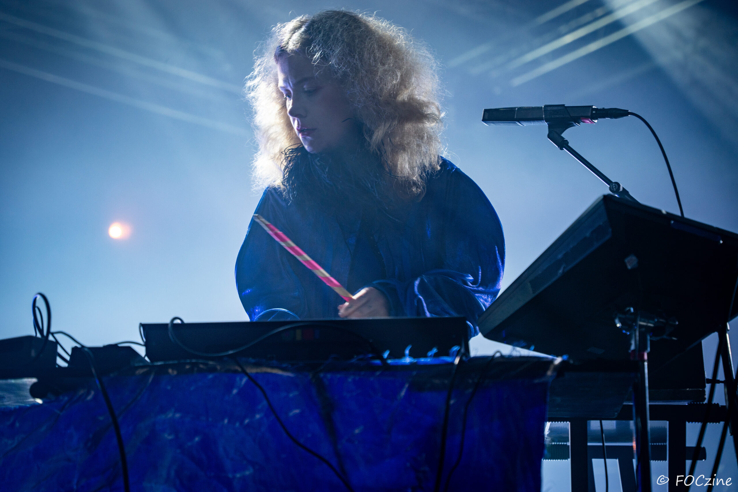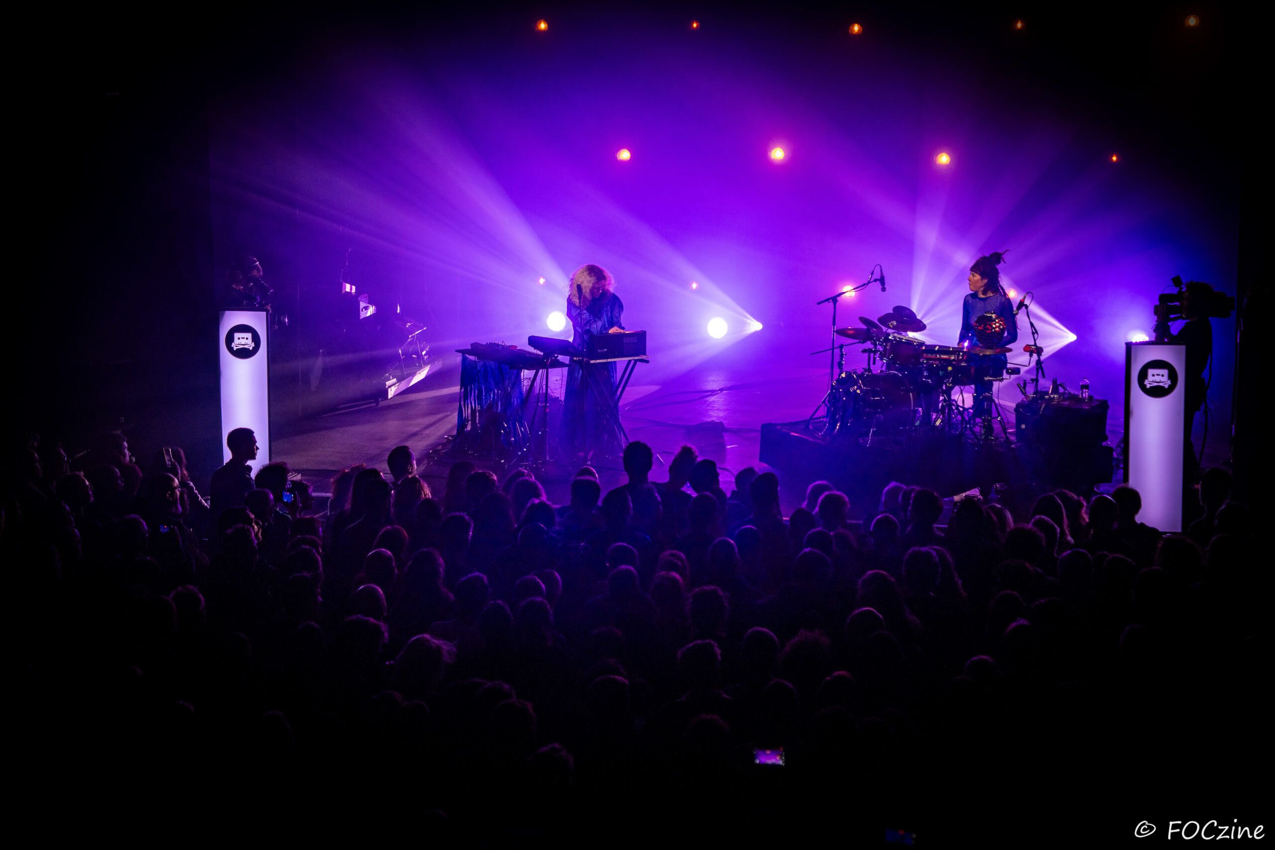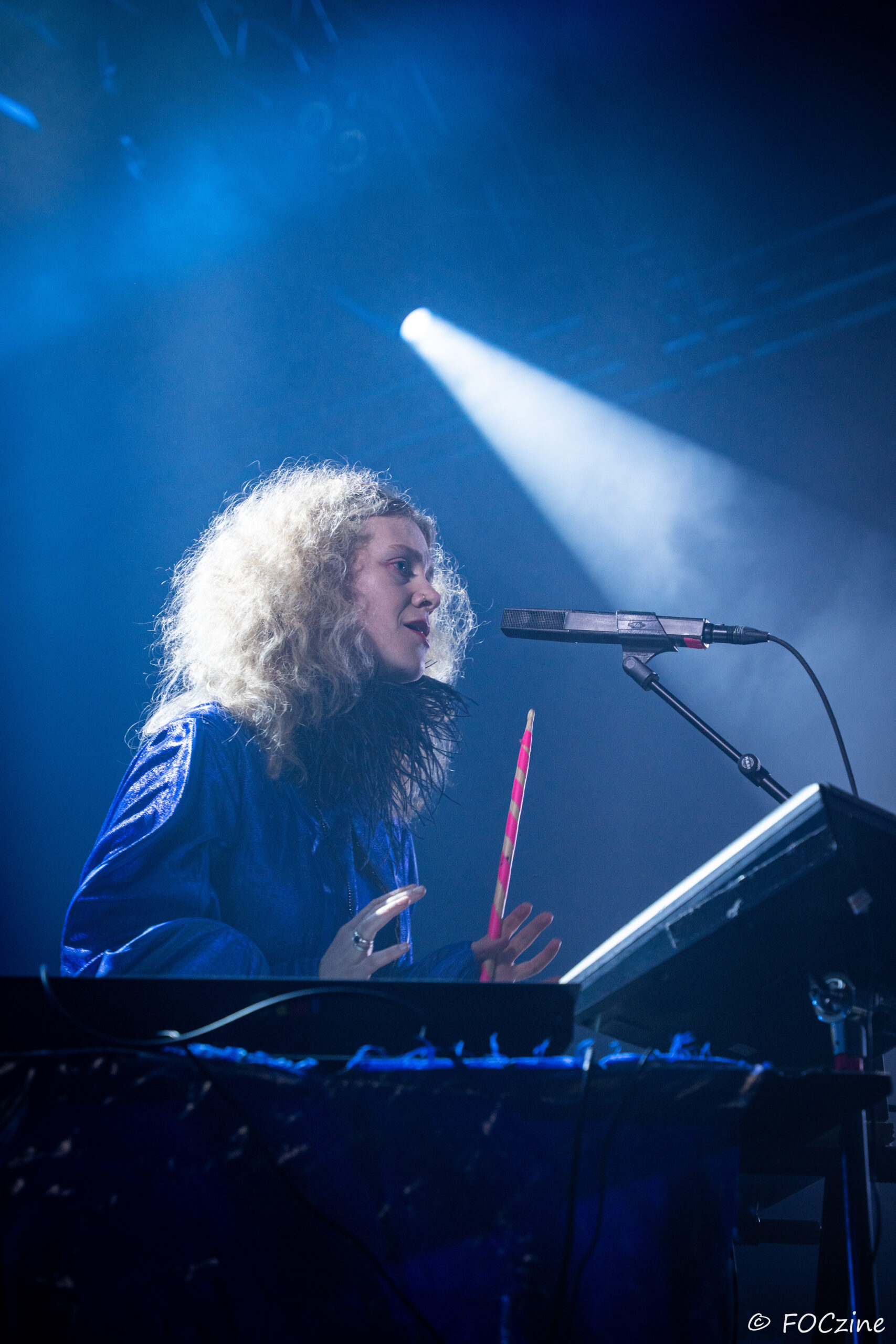 Rosa Ronsdorf et Nina Jong forment le duo néerlandais Spill Gold. Rosa chante et joue des synthétiseurs, tandis que Nina crée des rythmes percussifs hypnotiques. Explorant un univers musical mêlant krautrock, psychédélisme, synth pop expérimentale et musique électronique, elles composent des morceaux immersifs mêlant sons et rythmiques singuliers particulièrement mélodiques et dansants. Une fois qu’on a dit cela, on ne peut que vous encourager à écouter l’album Zaza (2024) où les deux musiciennes affirment une identité artistique unique. Manquerait plus qu’elles soient généreuses ! Féériques, vous voulez dire ! Rosa dans sa robe bleue, boa au cou, n’a rien d’une Cruella. Ses cheveux sont ébouriffés, car comme nous, ils sont électrisés et ne restent pas statiques. Le décorum bleu est envoûtant et lie les deux artistes, Nina arborant une salopette de la même couleur, en tissus de lumières. On se croit dans un conte pour enfants, nos yeux sont grands ouverts et nos oreilles toutes ouïes. C’est beau, ca dure, on est bien. Les Spill Gold renversent de l’or, elles sont nos muses du samedi qu’on voudrait encore entendre le dimanche, nos sirènes du port d’Amsterdam. J’ai un secret à vous dire, Rosa et Nina adorent la Bretagne : « c’est l’un de nos endroits préférés sur cette planète, on a rencontré des créatures magiques le long de la côte et on a aussi dégusté de véritables crêpes bretonnes ».